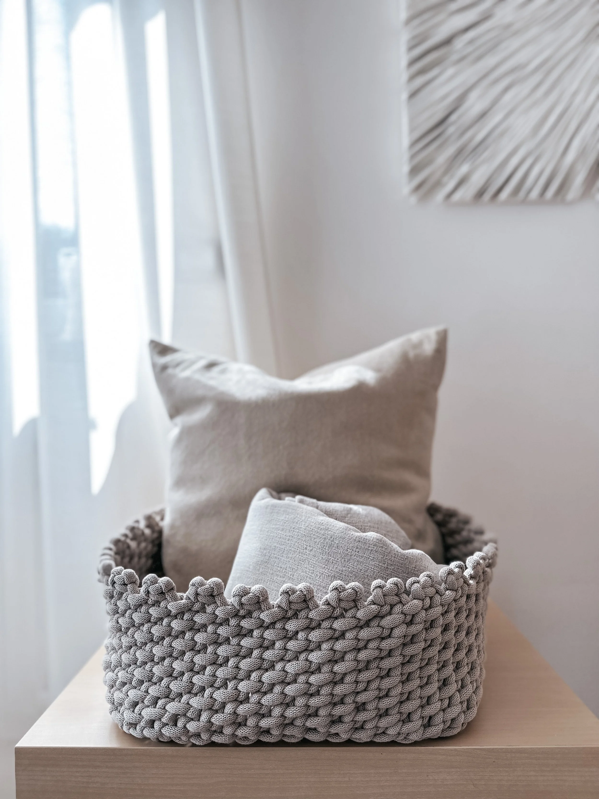 Complementi di arredo personalizzati e su misura per la vostra casa come cesti, organizer, cuscini, pods, coasters.